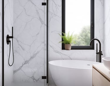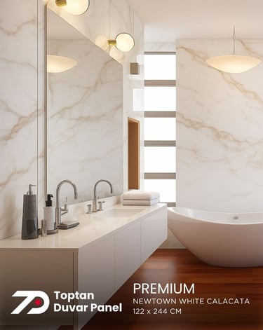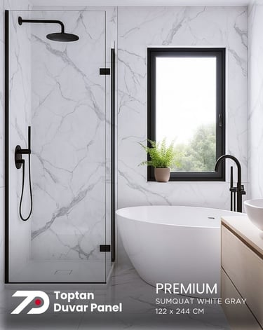 PVC & SPC duvar panelleri su geçirmez yapısıyla banyo, mutfak ve çamaşır odaları gibi ıslak alanlar için idealdir. Konut ve ticari alanlarda dayanıklılık ve güven sağlar.